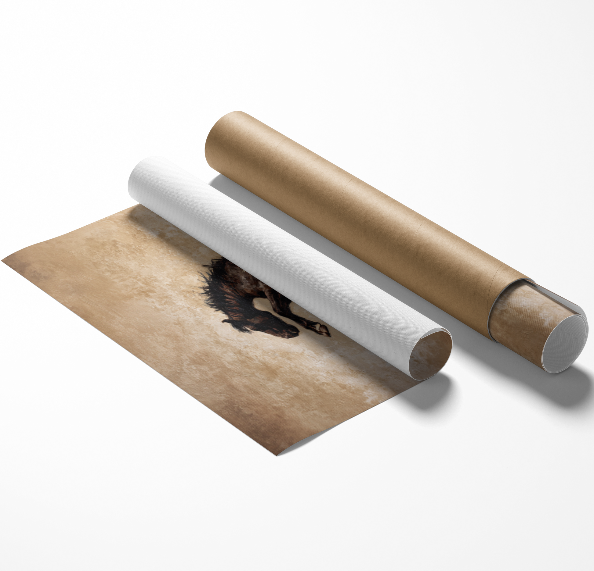 Bucking Bronco captures a split second of untamed motion, where rider and horse clash in a powerful dance of strength and control. Dust-toned hues and textured strokes bring frontier energy, grit, and artistry together in one striking composition. Printed on Giclee-grade archival paper with pigment-rich inks, it preserves every detail with clarity, heritage and Western character.